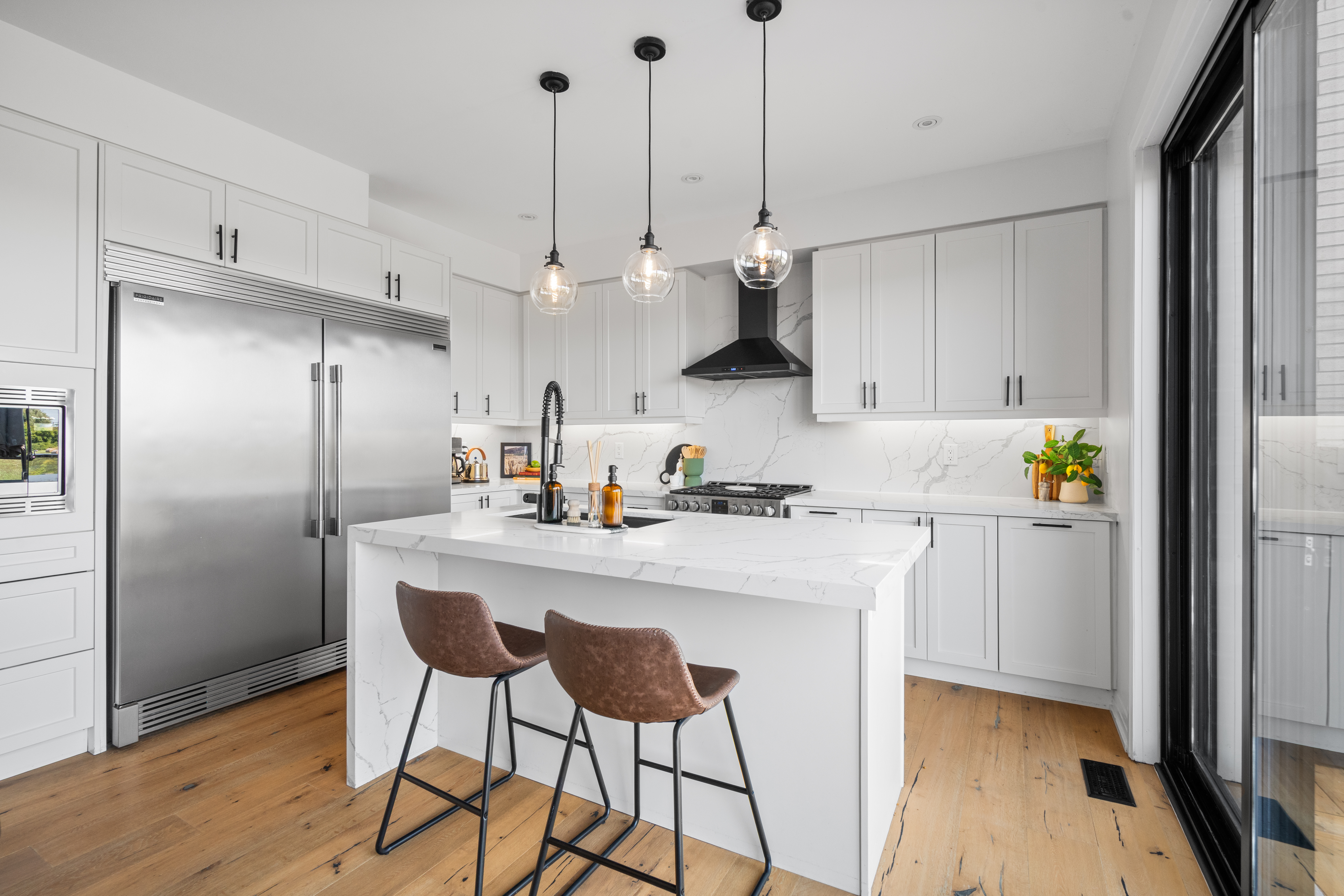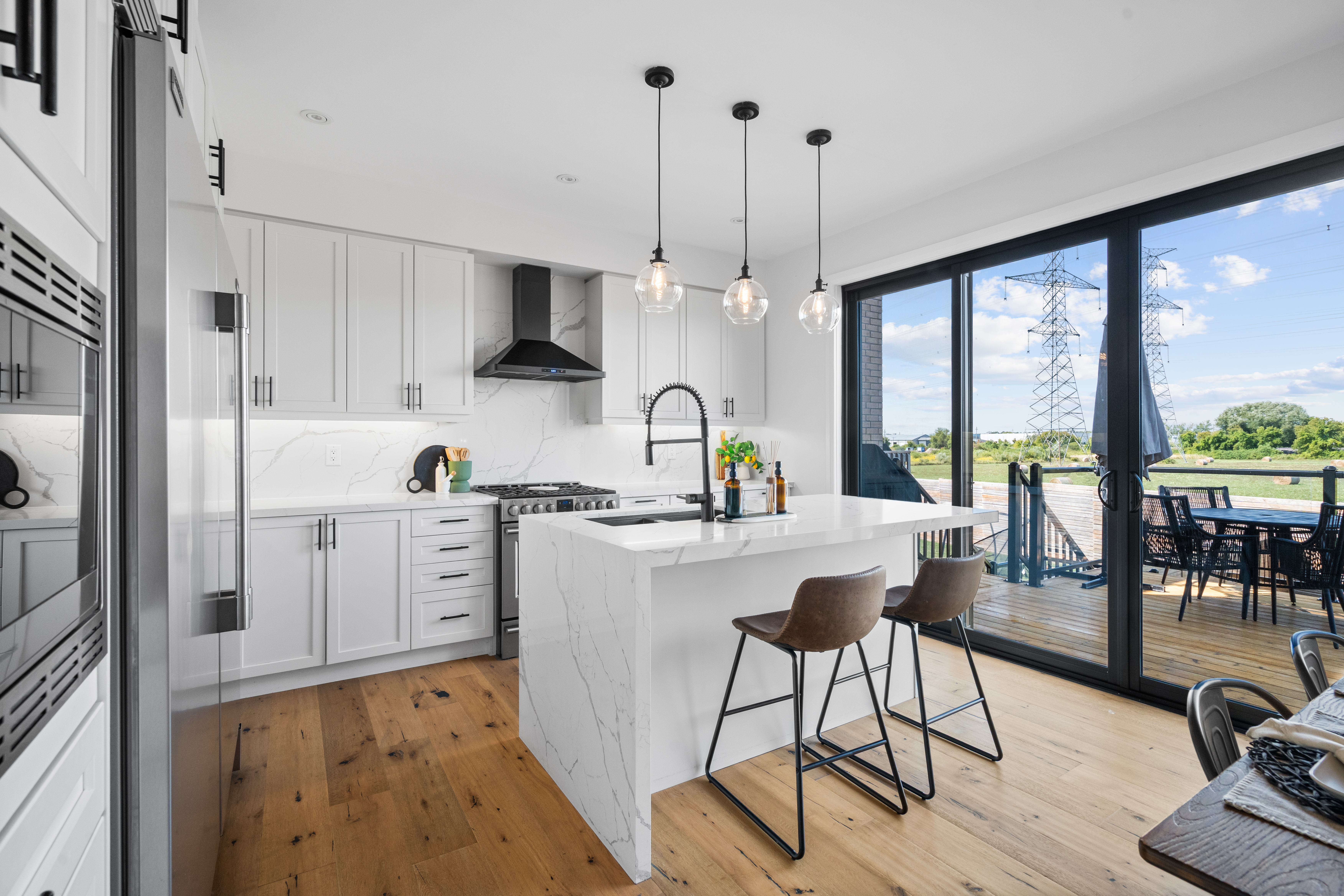 Steps to Lake Ontario | Prestigious Lakebreeze Community. Welcome to 191 Yacht Dr, a stunning 4-bedroom, 4-bathroom home offering close to 2,200 sq. ft. of above-ground living space plus a fully finished walkout basement with an in-law/nanny suite. Built in 2019 and lovingly maintained by the original owners, this property combines modern upgrades with a highly desirable location. The main floor features a spacious family room with in-wall surround sound speakers and a gas fireplace, a dining room, breakfast area, kitchen, and powder room all enhanced by engineered 7.5 wide hardwood flooring, premium tiles, custom kitchen cabinetry, elegant countertops, and stainless steel appliances. A 12-ft patio door floods the space with natural light and opens to a large deck overlooking an extra-deep backyard with no rear neighbours, offering panoramic views and unmatched privacy. The deck is equipped with a built-in gas hookup, perfect for barbecues and entertaining. Upstairs, the primary retreat boasts a large walk-in closet and a spa-like 5-piece ensuite. The upper level also includes three additional bedrooms, two full bathrooms, and a conveniently located laundry room. The fully finished walkout basement extends the living space, complete with engineered hardwood over Dricore subflooring, a spacious recreation room, a stylish 3-piece bathroom with a rainfall shower and body jets, and direct access to the backyard ideal for an in-law suite, nanny suite, or multi-generational living. Basement includes a custom kitchenette with a sink, butcherblock countertop, washer & dryer combo, and a microwave/ventilation fan combo. Additional upgrades: wiring for a future sauna/pool, a water softener system with sediment pre-filter, a humidifier, an Ecobee smart thermostat, a Weiser smart lock with fingerprint access, a main drain backflow valve for added protection, and a double-car garage with direct access into the home. This Home is move-in-ready.