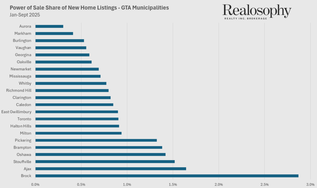 Not automatically. In today’s market, roughly 3% of listings on TRREB are Power of Sale. A large share of these properties are showing up in Brock, Ajax, and Stouffville.
